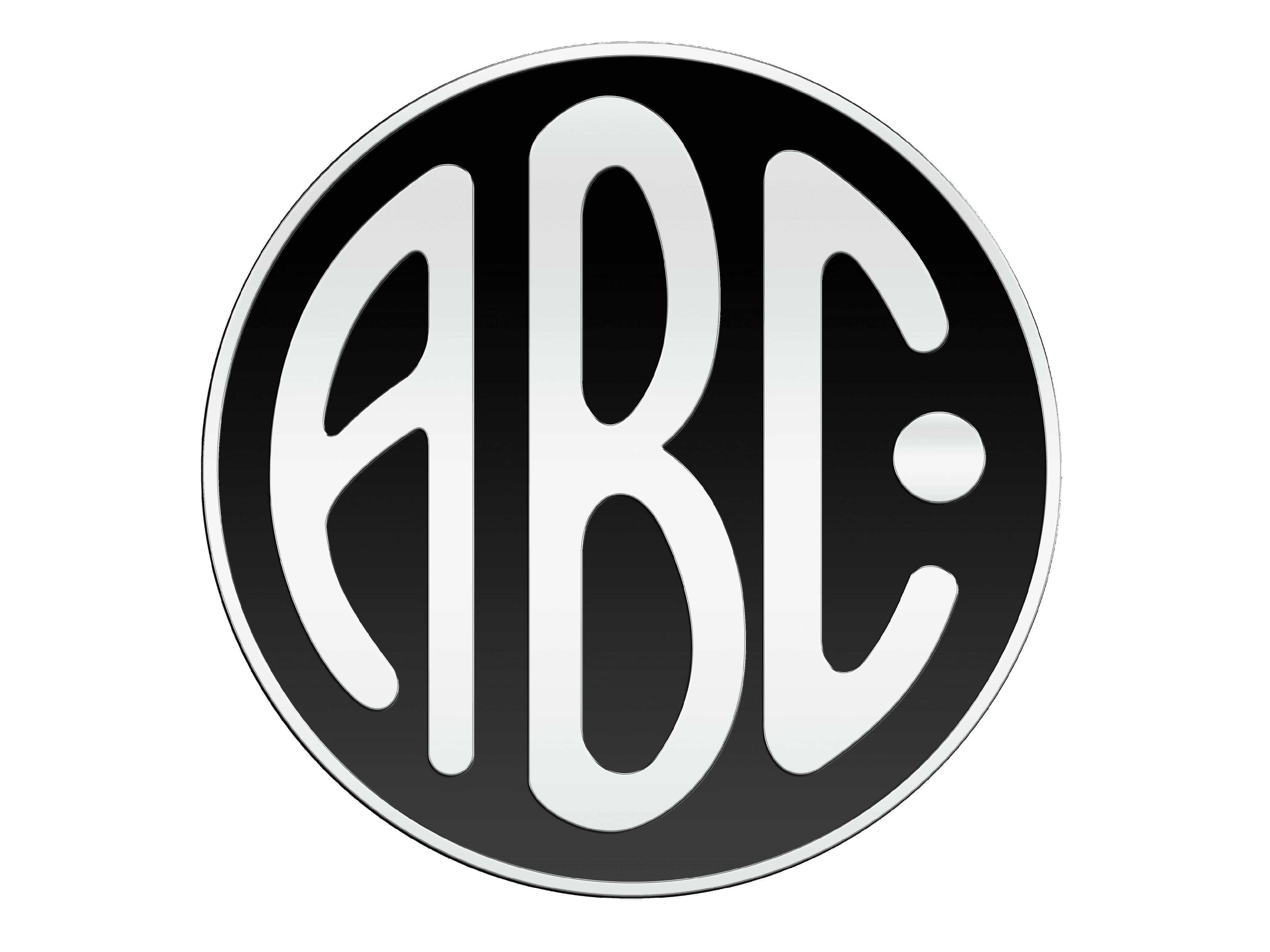 Bei der Platzierung in den Motorrädern des Unternehmens wurde das ABC-Abzeichen in Schwarz mit weißer Schrift und silbernem Umriss ausgeführt. Das Emblem erhielt auch einen doppelten Silberrahmen, mit dem dünnen inneren; und das dickere Äußere.